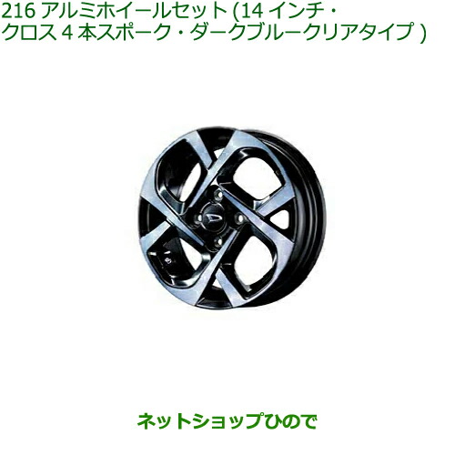 | 商品名:アルミホイールセット(14インチ・クロス4本スポーク・ダークブルークリアタイプ) |