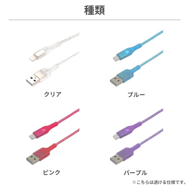 充電器iphoneケーブル 1m type-a to Lightning ライトニング ケーブル iphone スケルトン クリアカラー おしゃれ かわいい Melia クリア充電ケーブル 急速充電