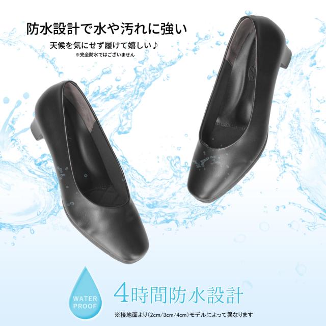 パンプス ローヒール 黒 痛くない 防水 ブラック ビジネス 大きいサイズ レディース スクエアトゥ 太めヒール 防滑 屈曲パンプス ベーシックパンプス Parade
