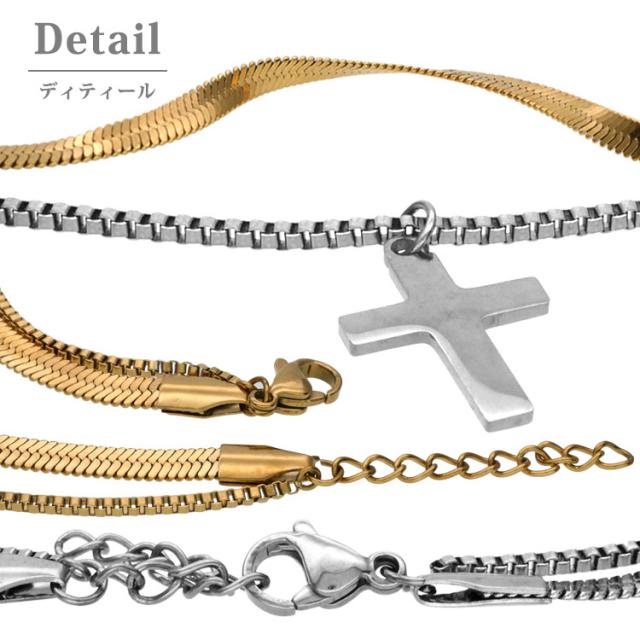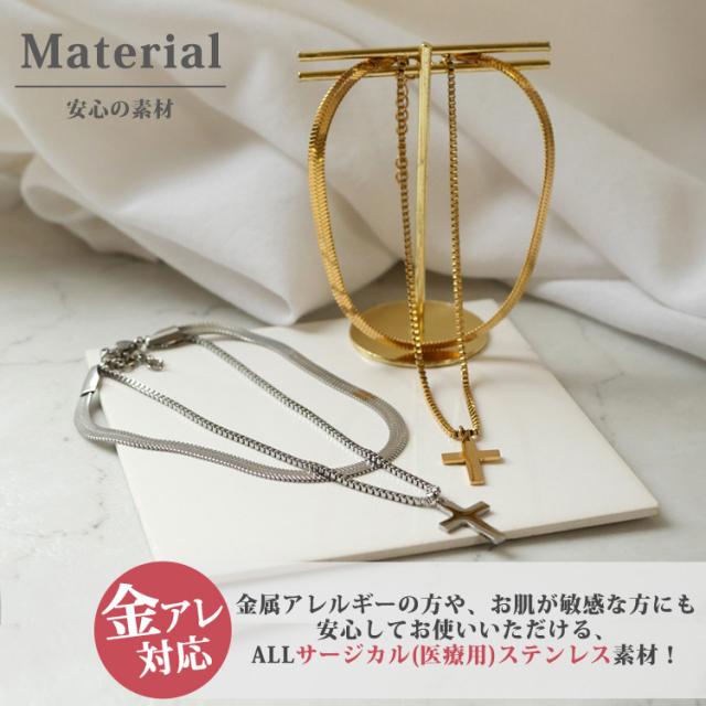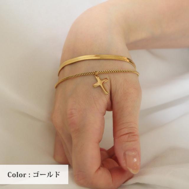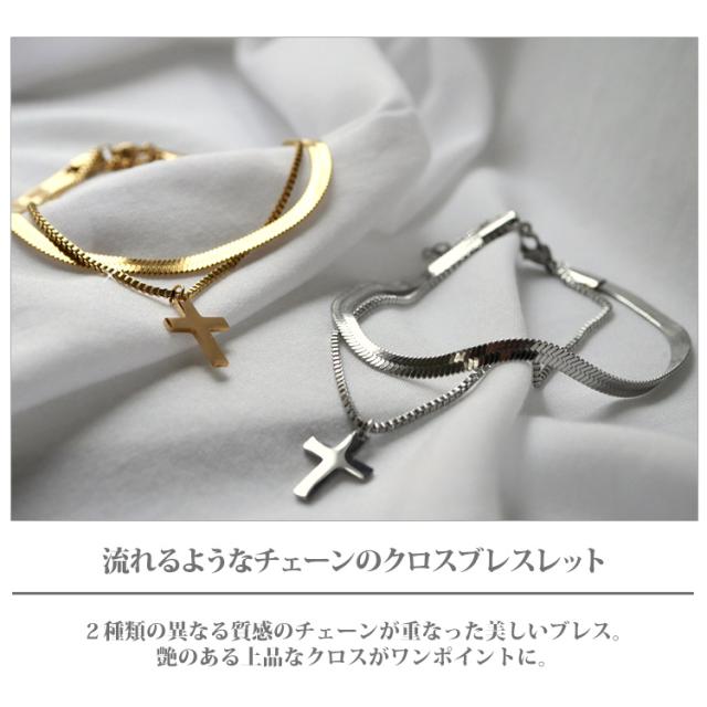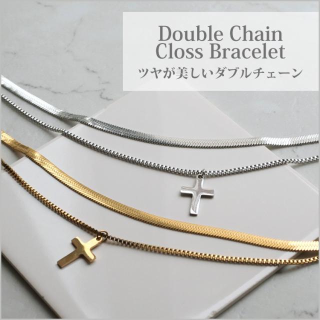 金属アレルギー対応 ステンレスブレスレット ダブルチェーンクロスブレスレット 316L