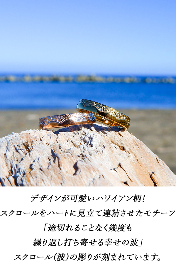 ハワイアンジュエリー リング 刻印 名入れ 石 ジルコニア ピンクゴールド スクロール ホヌ 記念日 誕生日 プレゼント ギフト sale