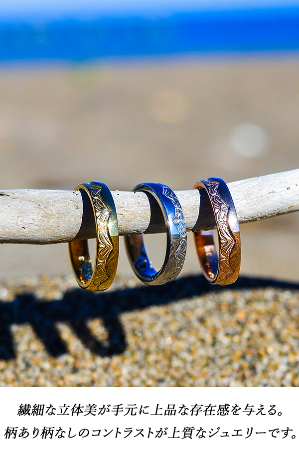 遠い昔からハワイアンジュエリーは人々の大切な想いとともに身に着けられてきました。ただの飾りではなく、その時々の想いそれぞれのあたたかい気持ちを宿っているからこそ放つ本当の輝き、真実。熟年された職人が積み重ねてきた感性で丁寧に彫りこんでいます。