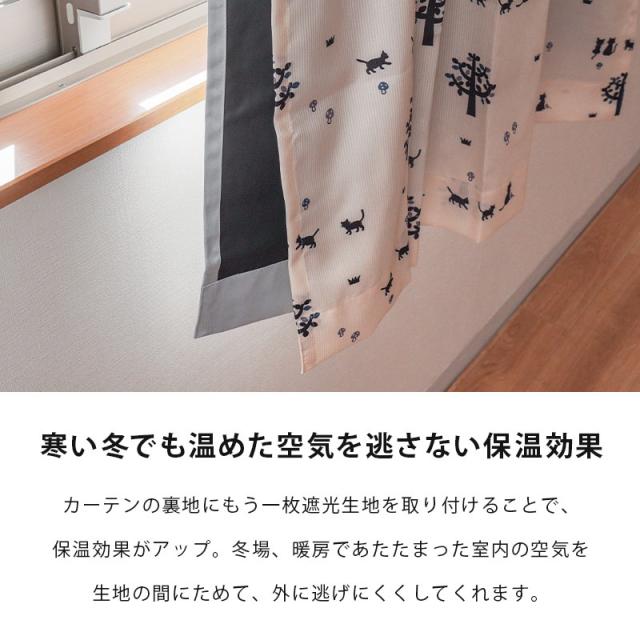 | ・後付けで装着簡単! お気に入りのカーテンが今日から1級遮光カーテンになります。光を気にせず朝までぐっすり眠れて、夜間部屋の様子が映ることもないのでプライバシーをしっかりと保護します。 ・安心の遮音機能ピアノの音や、話し声など日常の生活音もカーテンでしっかり遮音して快適な生活をサポート!外からの騒音を和らげてくれます。 ・熱気も冷気も防ぐ遮熱効果エアコンの効きに不満がある方、外からの冷気が気になる方に。ご使用されているカーテンの遮熱機能を底上げし、冷暖房効率がアップするため、省エネにも役立ちます。 ・寒い冬でも温めた空気を逃がさない保温効果カーテンの裏地にもう一枚遮光生地を取り付けることで、保温効果がアップ。冬場、暖房で温まった室内の空気を生地の間にためて、外に逃げにくくしてくれます。 ・夏・冬問わず一年中を快適に!カーテンの裏側にもう一枚取り付けるだけで、遮光・遮音・遮熱・保温カーテンに早変わり!一年を通してお部屋の快適さをアップ! ・洗濯機で気軽に洗えるパッと見は普通でも、意外と目に見えない汚れが付いているのがカーテン。頻繁に洗う必要はありませんが、時々でいいのでお洗濯をしてください。 | |