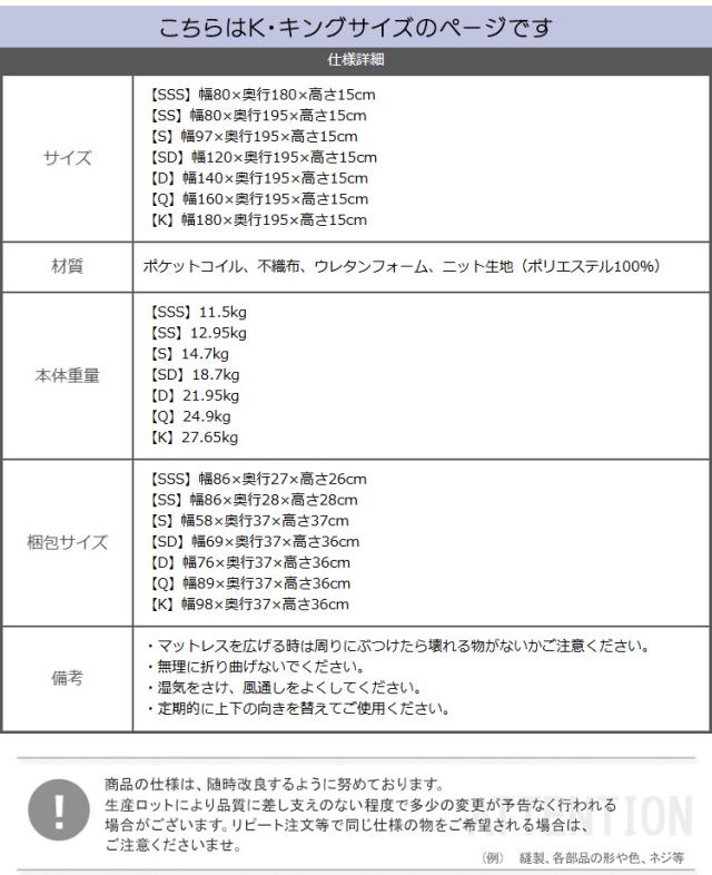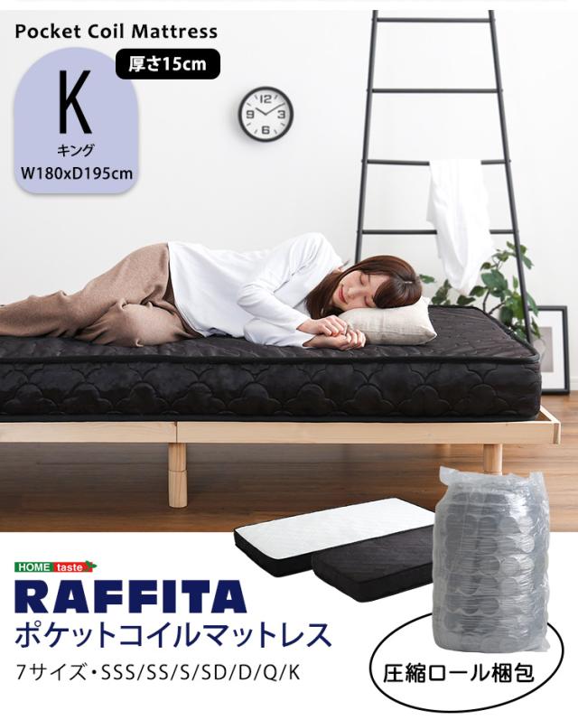 ポケットコイルマットレス 特許技術の圧縮梱包 Kサイズ RAFFITA(ラフィータ) 2色対応 マットレス ポケットコイル ベッドマットレス キングベッド 180x195 敷布団 厚さ15cm 柔らかめ 圧縮ロール梱包 コンパクト おしゃれ