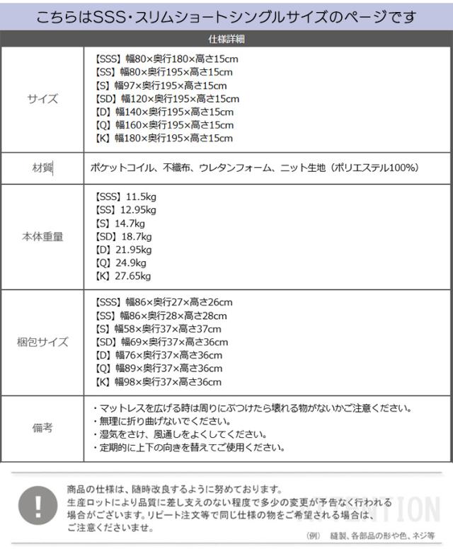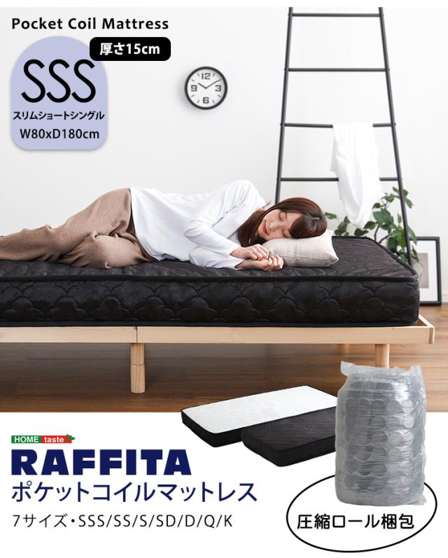 ポケットコイルマットレス SSSサイズ RAFFITA(ラフィータ) 2色対応 マットレス ポケットコイル ベッドマットレス セミシングルベッド ショート丈 80x180 敷き布団 厚さ15cm 柔らかめ 圧縮ロール コンパクト おしゃれ