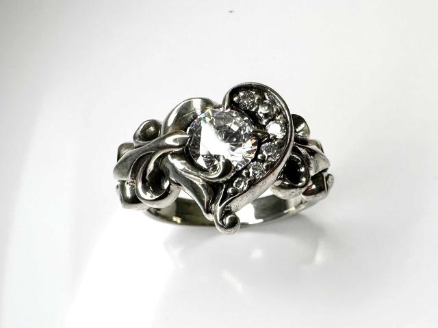 ハートをアレンジしたゴシックリング。