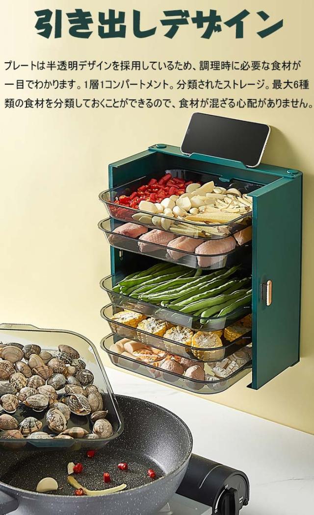 下ごしらえに便利:乱雑なキッチン周りをこれで解決!食材を縦収納することで狭いキッチンも有 効利用できます。壁に貼っても、そのまま調理台に置いても。調理するときは食材を引き出し、次 々簡単にクッキングできます。