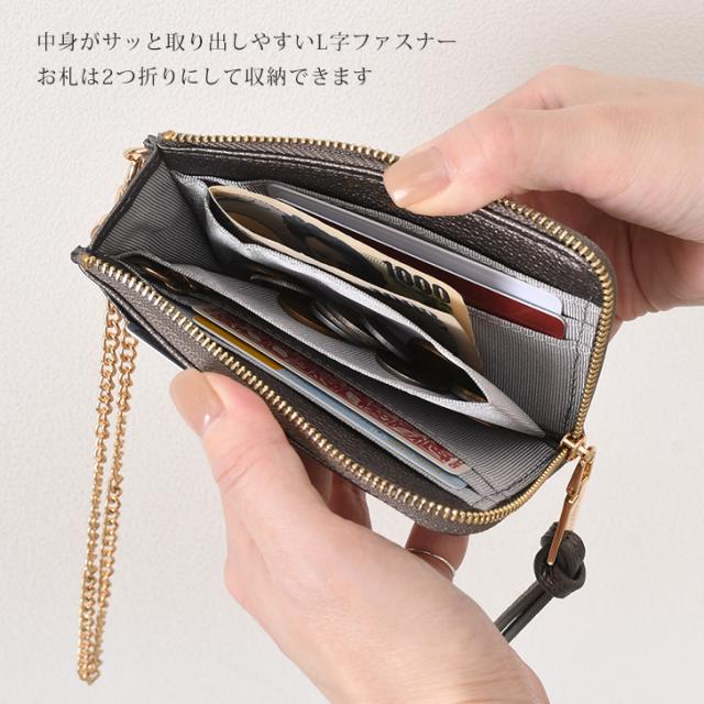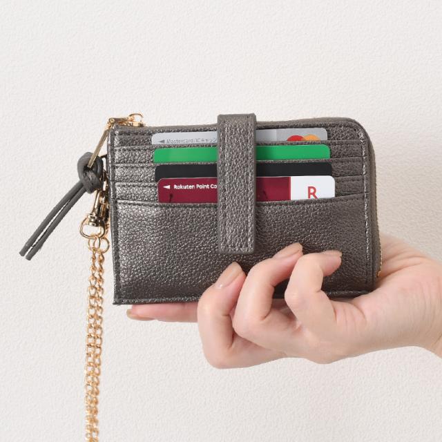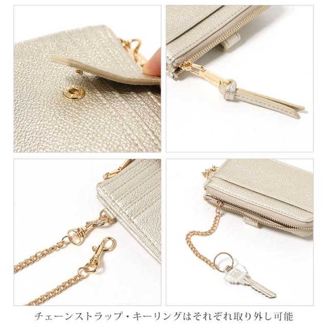 新作 パールシュリンク チェーンストラップ付き フラグメントケース レディース ミニウォレット ミニ財布 パスケース 定期入れ カード入れ カードケース おしゃれ かわいい メタリック 小銭入れ 札 収納 コンパクト