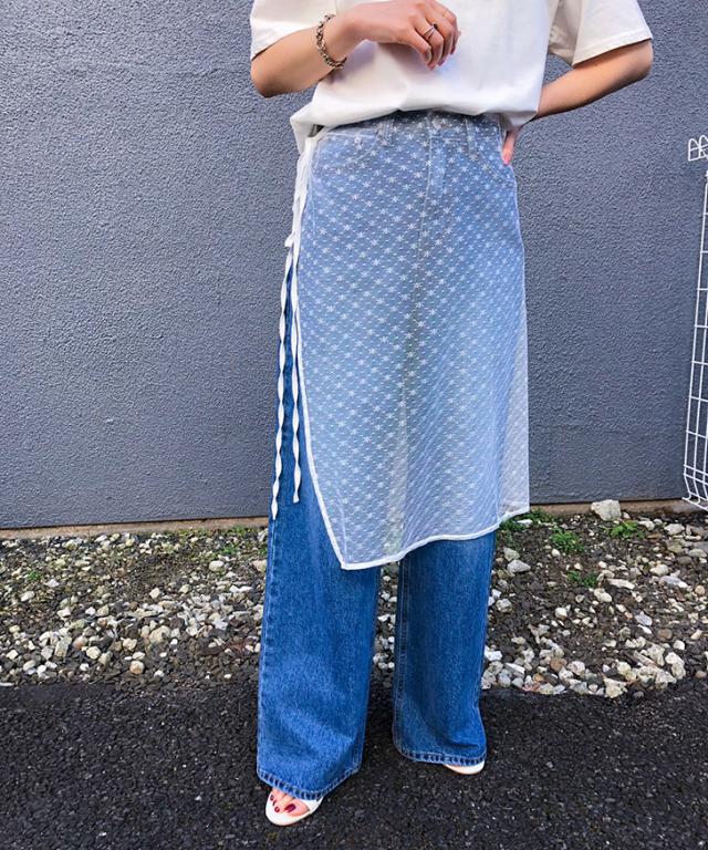 新作 シアーレースレイヤードラップスカート レディース スカート ボトムス 巻きスカート 巻き レイヤード 重ね着 巻くスカート ラップスカート 膝下 ひざ丈 チュール シアー 透け シースルー 総レース ズボンの上