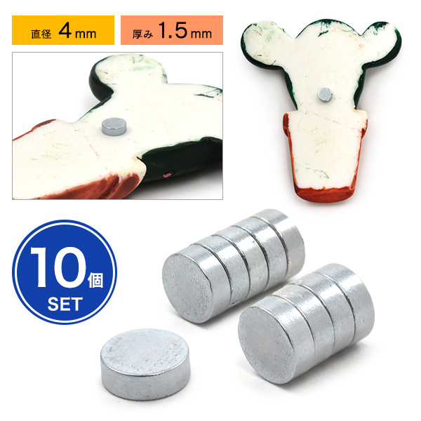 ネオジム磁石 丸型 直径4mm 厚み1.5mm 10個セット 手作り工作 DIY パーツ素材 強力 Neodymium 磁石 マグネット スマホケース作成 鞄 小物 手作りアクセサリー パーツ 素材 手芸 冷蔵庫 メモ貼り付け ホワイトボード オフィス キッチン ネオジム 小型マグネット