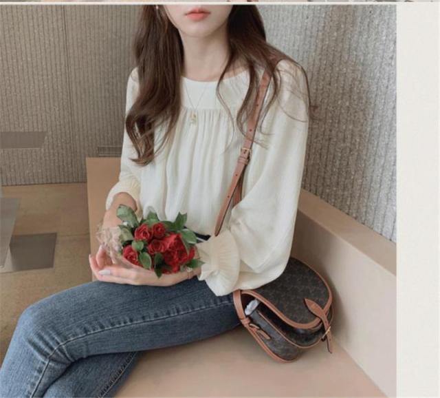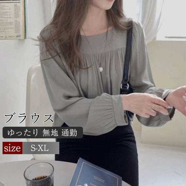 ブラウス レディース シャツ 長袖 スクエアネック シフォン プルオーバー パフスリーブ ルーズ ギャザー ゆったり 無地 通勤