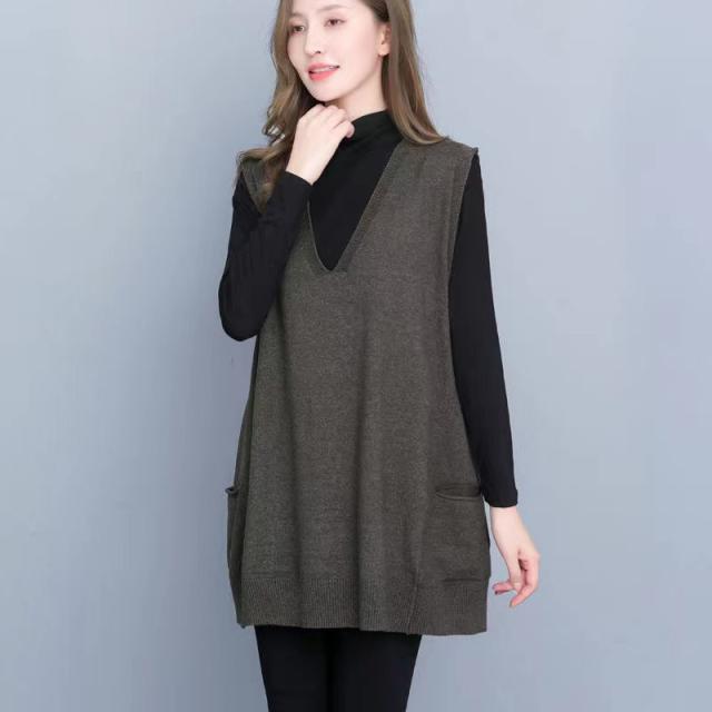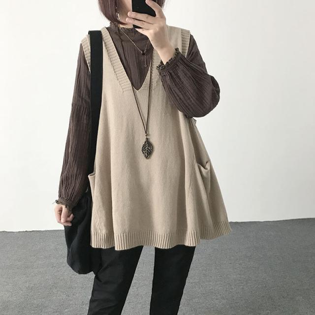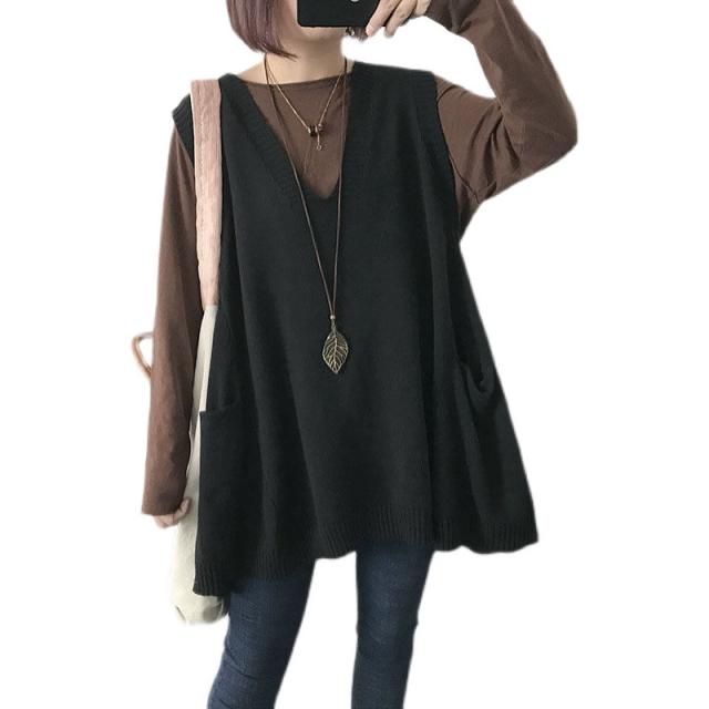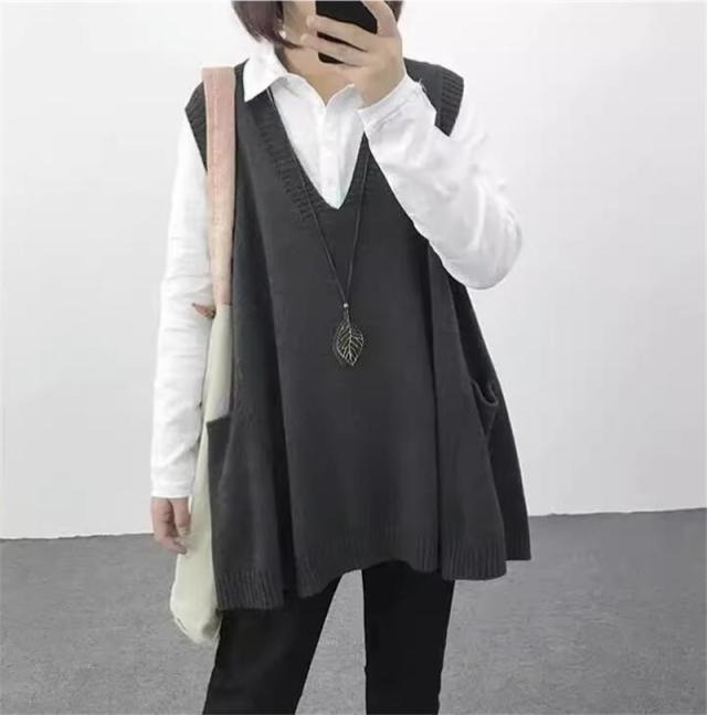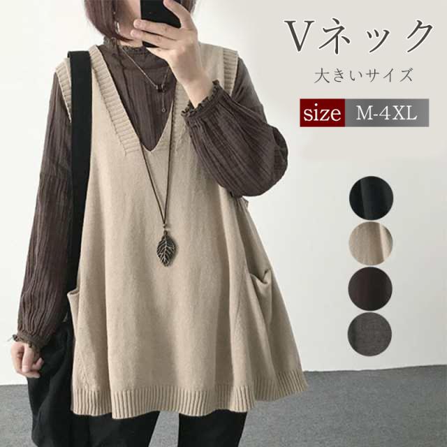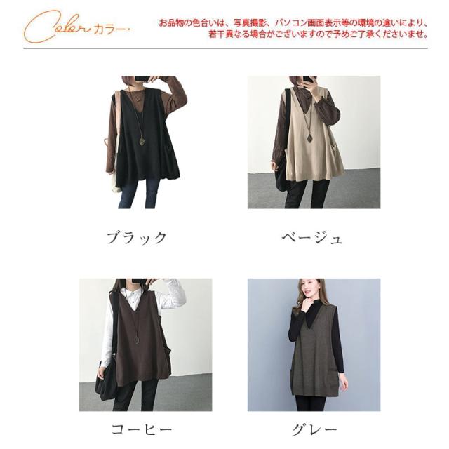 ベスト レディース ニットベスト プルオーバー Vネック セーター アウター 大きいサイズ シンプル レイヤード 無地 薄手 着痩