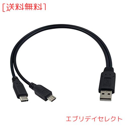Duttek USB 2.0 二股ケーブル, USB 2.0 Aオスto USBタイプCオス& マイクロUSBオスY字2分岐ケーブル, 多機能2 in 1 USBタイプC Yスプリッ
