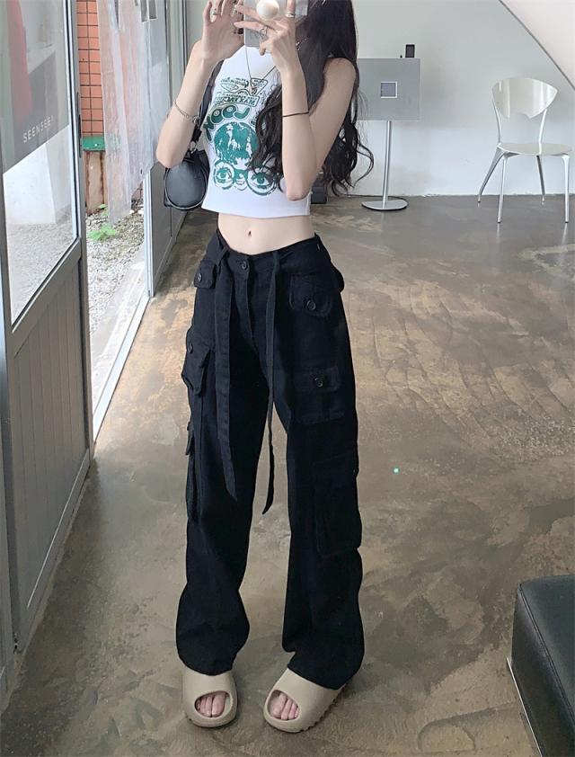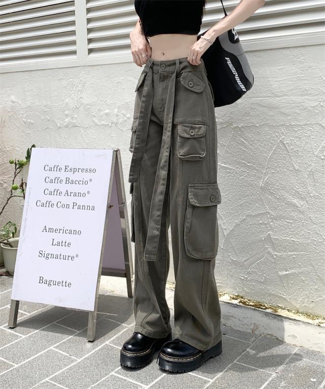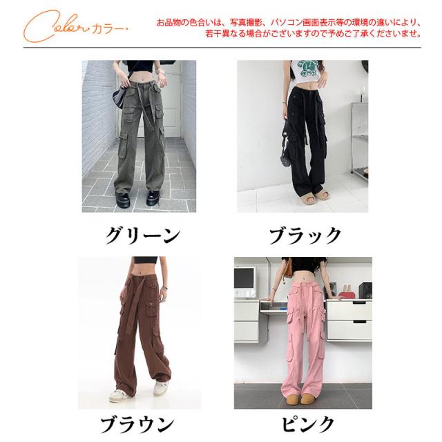 カーゴパンツ ワイドパンツ レディース アメカジ ストレートパンツ ハイウエスト ワークパンツ ゆったり デニム 着痩せ 無地 原