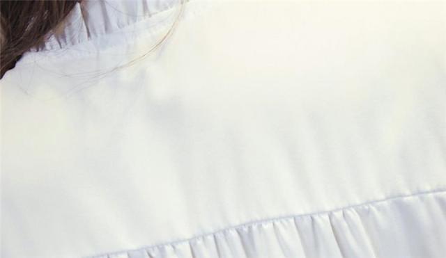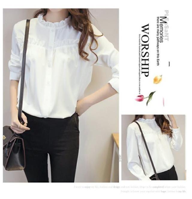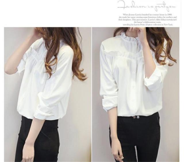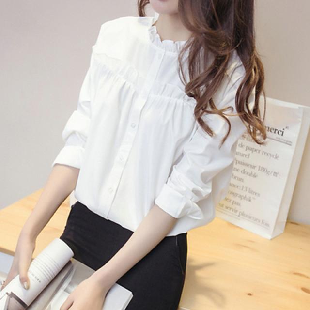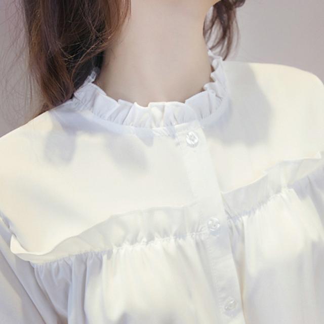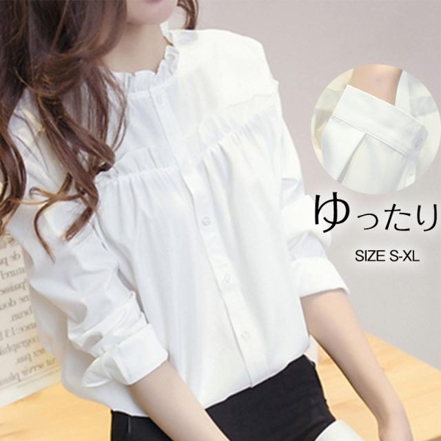シャツ ブラウス レディース トップス 長袖 綿 フリル フォーマル スタンドカラー フリルネック 白シャツ 着痩せ 通勤 OL