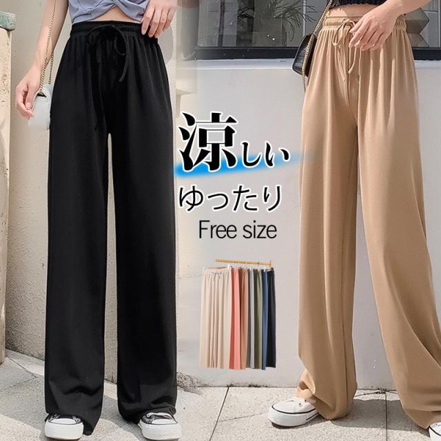 ワイドパンツ レディース ガウチョパンツ ロング イージーパンツ 接触冷感 カジュアル ルームウェア ゆったり 薄手 体型カバー