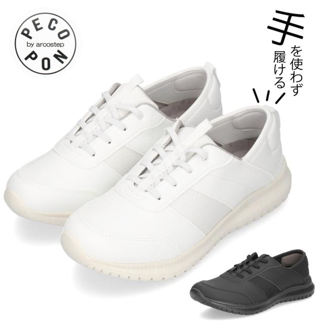 スリッポン メンズ レディース スニーカー ハンズフリー 軽量 ブラック 黒 ホワイト 白 立ったまま履ける ゴム紐 抗菌 ペコポン PECOPON PP-200 靴