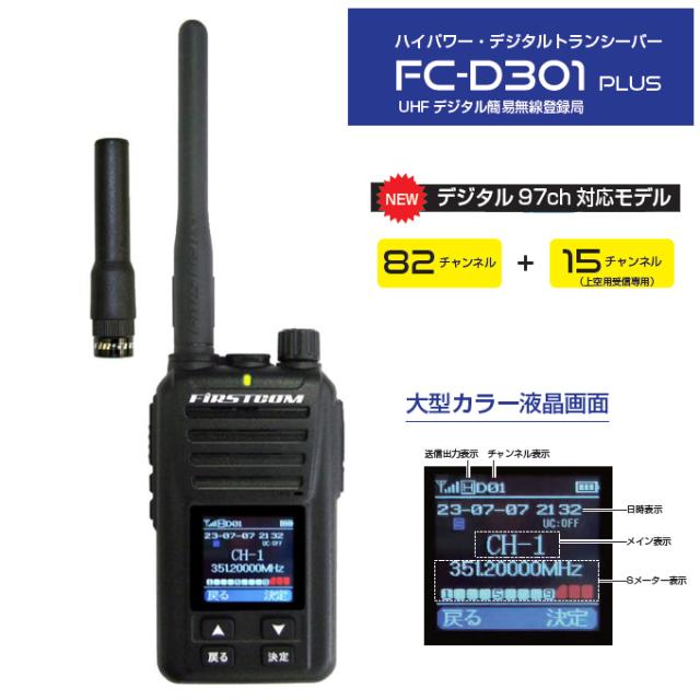 送料無料 5W 97ch デジタルトランシーバー FC-D301 PLUS 充電器等付属 デジタル簡易無線登録局 増波対応モデル F.R.C. エフ・アール・シー FIRSTCOM