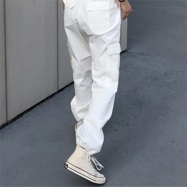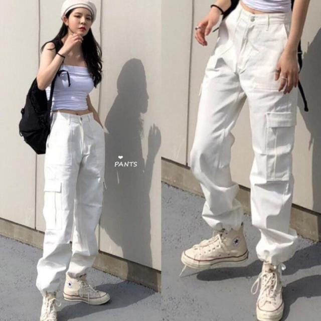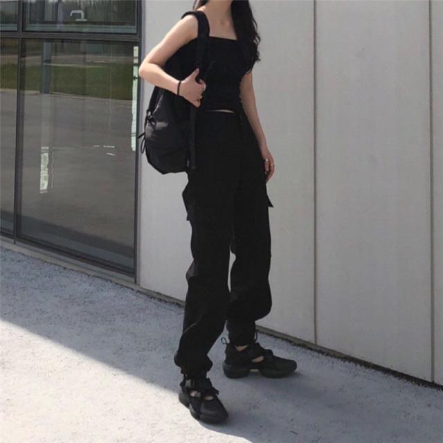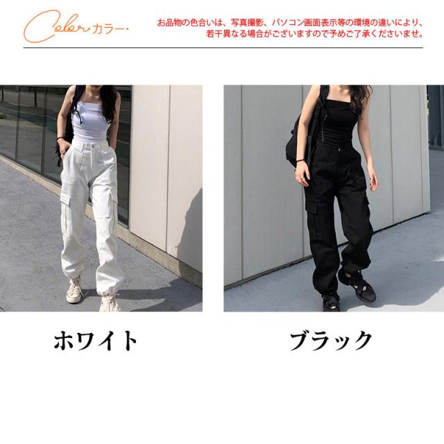 送料無料 カーゴパンツ レディース ハイウエスト ストレートパンツ ハイウエスト ヒップホップ カジュアル 無地 原宿風 チノパン
