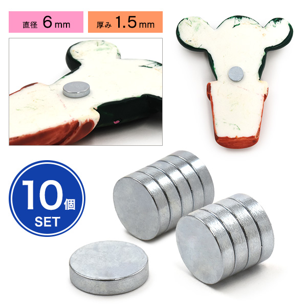 ネオジム磁石 丸型 直径6mm 厚み1.5mm 10個セット 手作り工作 DIY パーツ素材 強力 Neodymium 磁石 マグネット スマホケース作成 鞄 小物 手作りアクセサリー パーツ 素材 手芸 冷蔵庫 メモ貼り付け ホワイトボード オフィス キッチン ネオジム 小型マグネット
