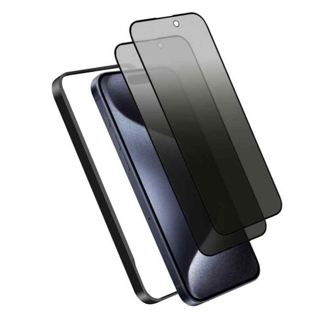 DXFAU 【2枚入り】28°覗き見防止 iPhone 15 Pro max 強化ガラスフィルム 液晶画面 6.7インチ 全面保護フィルム 硬度9H 滑らかなタッチ操作 指紋付着防止 気泡防止 ガイド枠付き 貼り付けは簡単( アイフォン15 Pro max