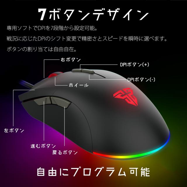 【送料無料】ゲーミングマウス 高精度 マウス LED光学式 マウス usb有線 マウス 7段調節可能DPI マウス 左右対称 マウス 手首の痛みを予防 X17 BLAKEマクロ対応