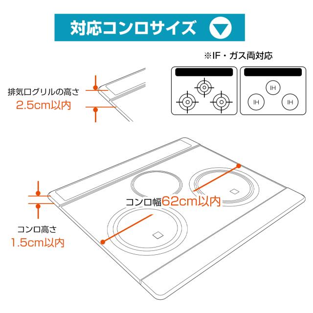 【送料無料】排気口カバー 60cm対応 【高品質 ステンレス鋼!】コンロカバー 幅64cm スマート フラット ガス IH コンロ グリルカバー グリル 調味料 ラック コンパクト 傷防止 コンロ用 洗いやすい 油はね ガード 贈り物