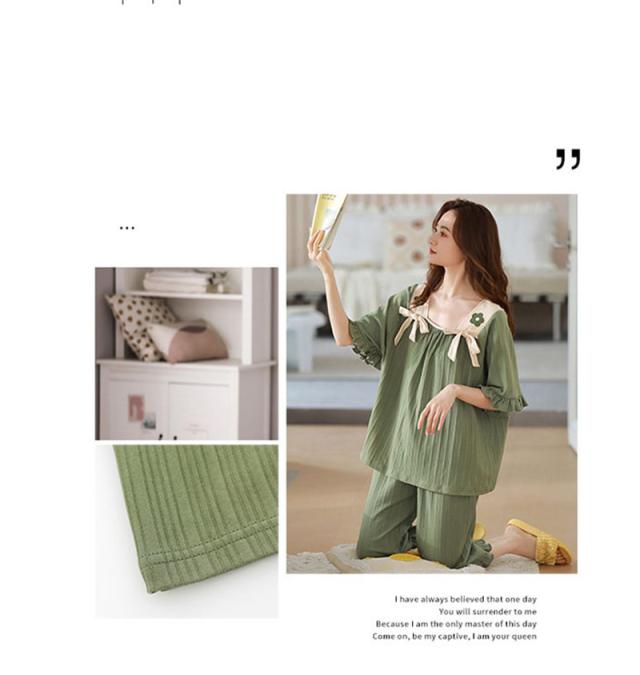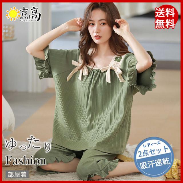 新作 パジャマ レディース ルームウェア 上下セット 冷感素材 半袖 短パン 2点セット リボン レース シワ加工 ゆったり 寝巻き 薄手 可愛い 夏