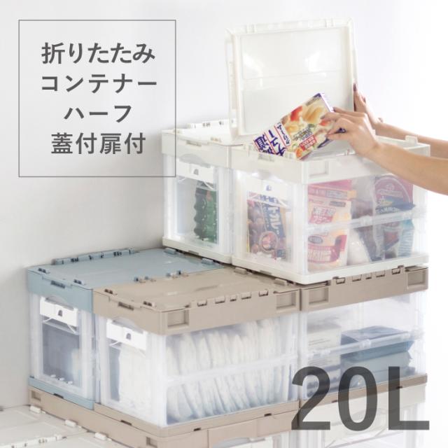 収納ボックス 折りたたみコンテナー ハーフ 蓋付扉付 20L CF21NR 収納ケース プラスチック 折りたたみ 折りコン 神ボックス 送料無料 コンテナボックス オリコン 20L ハーフ 岐阜プラスチック工業 リス
