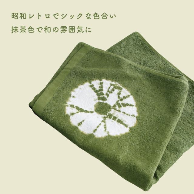 《昭和レトロ》●しぼり柄のバスタオル 1枚● 綿100% 優しい肌触り 抹茶色で和の雰囲気♪ 約60×120cm [1個ならゆうパケット]