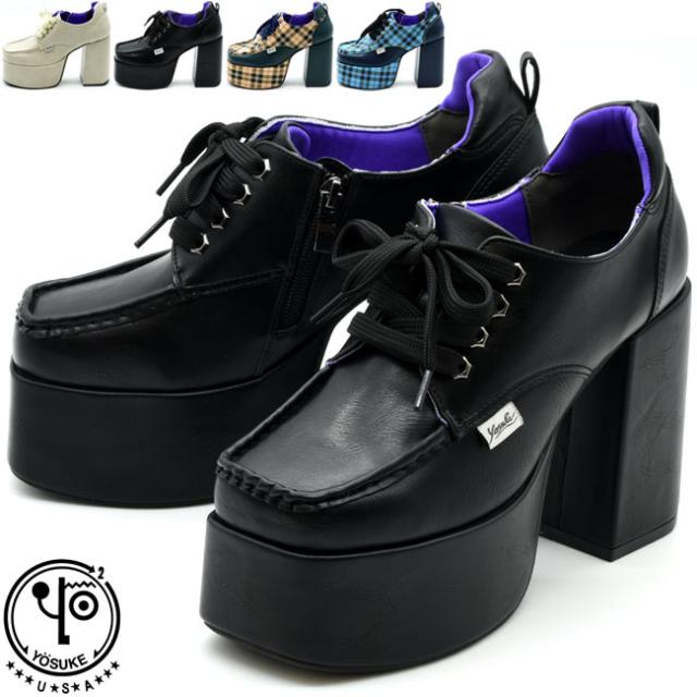 ヨースケ YOSUKE 厚底パンプス レースアップシューズ チャンキーヒール レディース 全4色 S-LL 黒 白 2810127