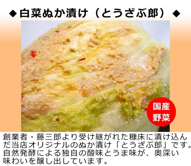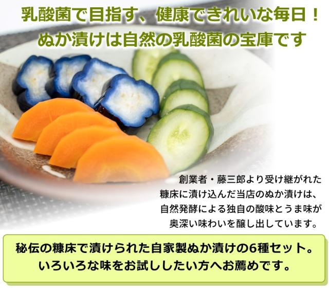 伝統の糠床で漬けられた自家製ぬか漬けの6種セット。送料無料でお届けいたします。// 自家製 漬物 ぬか漬け とうざぶ郎 とうざぶろう 白菜 胡瓜 きゅうり 人参 にんじん 大長なす なす かぶ 蕪 大根 ギフト 母の日 父の日 お中元 敬老の日 お歳暮 誕生日 プレゼント セット