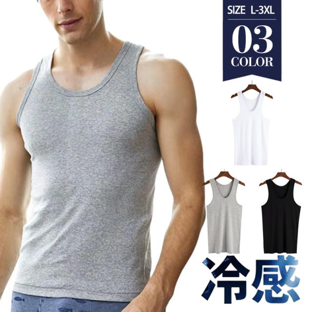 タンクトップ メンズ インナー ノースリーブ 肌着 下着 無地 ランニング ひんやり サマーウエア 着痩せ 伸縮性 スポーツ スリ