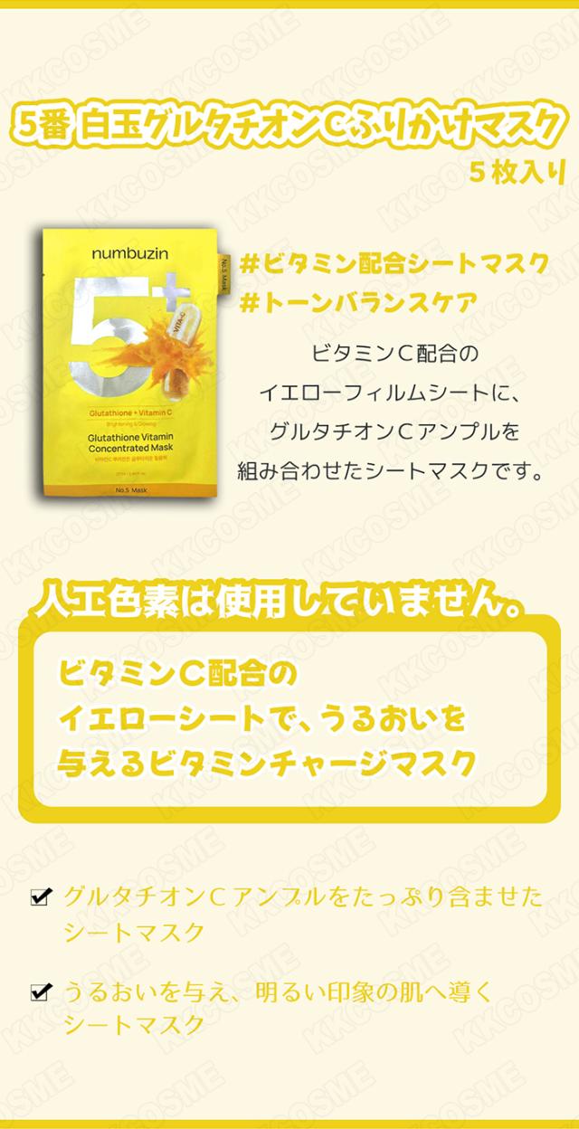 numbuzin ナンバーズイン 5番 白玉グルタチオンcふりかけマスク 5枚入 マスクパック フェイスマスク スキンケア 韓国コスメ 正規品