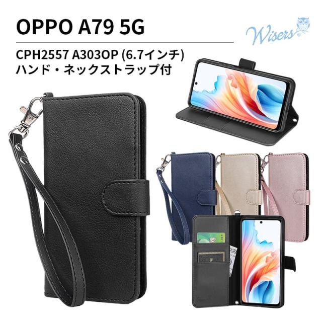 wisers OPPO A79 5G 対応 手帳型スマホケース (全4色) 牛革調PUレザー (カードホルダー/スタンド機能付き) ストラップ 2種付き ( ストラップ / ネックストラップ ) 2024年 新型