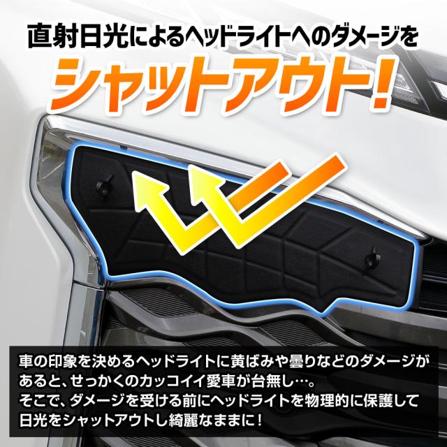 ヘッドライトを直射日光から守って劣化を防ぐ! ヘッドライトを物理的に保護する、ヘッドライトサングラスの登場です! ガレージがない、集合住宅で車への直射日光が避けられないなど、青空駐車をしなくてはならなくても、もう大丈夫です! スタイリッシュな形状で見た目もよくヘッドライトを保護!青空駐車の強い味方です。 ヘッドライトの黄ばみや曇りの原因は直射日光に含まれる紫外線…。 ヘッドライトが痛んでしまうと車の価値もだだ下がり…、交換すれば10万円オーバーすることも…。 ヘッドライトサングラスを装着することで、致命傷を避けることが可能です! 毎日装着しなくても、装着した分だけ劣化を遅らせます! 毎日装着するのはちょっと面倒……という方でも大丈夫です! 陽射しが強い期間だけ、長期間乗らない時だけ、あまり乗らない時だけの装着でも、十分効果があります! 全く保護せず3年が経ち、ヘッドライトが劣化したと仮定すると、 毎日カバーで10年、年間半分のカバーで約6年、年間1/3だけカバーで約4年後もキレイなまま! ヘッドライトの黄ばみや曇り取りに関する商品は多数販売されていますが、キレイになるのは施術をした直後の短期間だけ…。 またすぐ同じ様に劣化してしまい、そのたびに費用が……。 そこで、ヘッドライトサングラスを装備し、劣化する前からケアすることがオススメ! 車種専用のジャストフィット設計 これまで数多くの車種専用パーツを開発・販売してきたユアーズのノウハウを詰めこんだ車種専用設計で、フィット感はジャスト! 装着する事で見た目もスタイリッシュになるので、駐車中もだんぜんかっこよくなります! ヘッドライトサングラスの素材には防水性、耐候性に優れたTPE(熱可塑性エラストマー)を使用。 どんな天候でもOKです! |