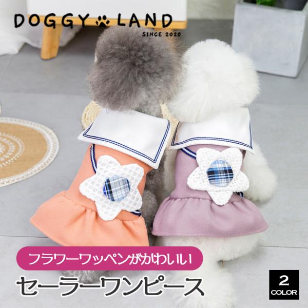 犬服 ドッグウェア セーラーワンピース スカート フラワーワッペン付き 送料無料 秋 冬 犬 服 犬の服 ドギーラン DOGGYLAND あったか かわいい ペット服