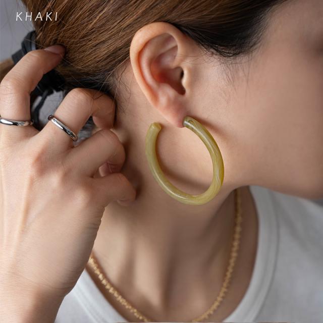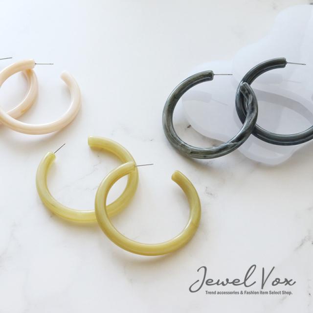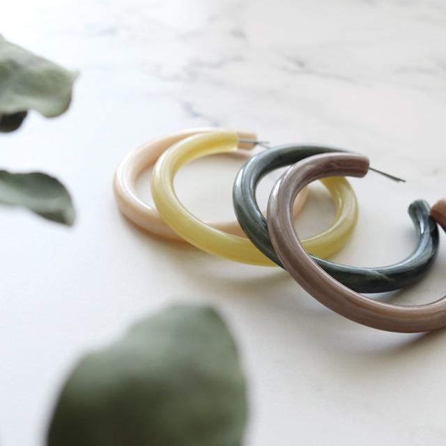 リッチな表情のマーブル模様が印象的なアクリルフープピアスです。