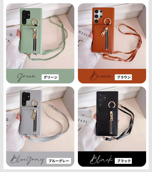 ショルダーストラップ Galaxy A54 A53 5G S22 S22 Ultra S23 S23 Ultra スマホケース ショルダータイプ ギャラクシーa54 ケース ファスナー付き galaxy a54カバー 大人可愛い ギャラクシーa53ケース 背面手帳型ケース Galaxy S23ケース 小銭入れ 財布型 ジッパー 背面 カード入れ 肩掛け 韓国 くすみカラー