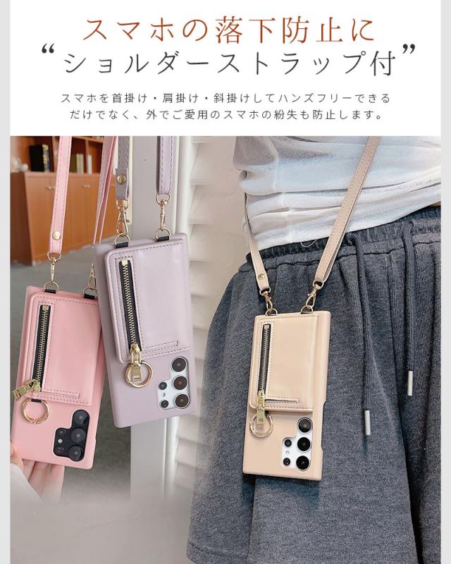 ショルダーストラップ Galaxy A54 A53 5G S25 S22 Ultra S23 S23 Ultra スマホケース ショルダータイプ ギャラクシーa54 ケース ファスナー付き galaxy a55カバー 大人可愛い ギャラクシーs24ケース 背面手帳型ケース Galaxy S23ケース 小銭入れ 財布型 ジッパー