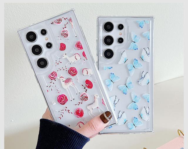 UVプリント スマホケース Galaxy S23 S23 Ultra Galaxy S24 S24 Ultra A53 5G A54 5G ケース ハードケース ギャラクシー S24 ウルトラケース 耐衝撃 galaxy a54 5G カバー 蝶柄 大人女子 galaxy a55ケース 透明ケース 女の子 女子 Galaxy s24ケース かわいい TPUバンパー