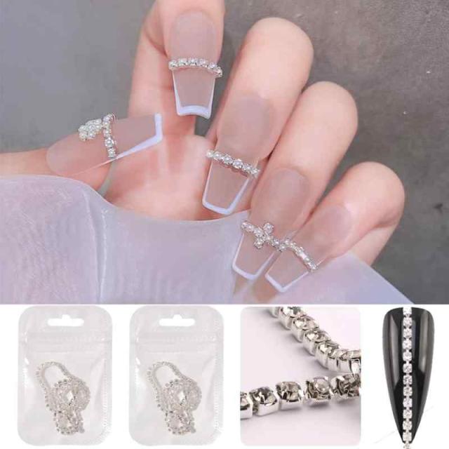 LIKENNY ネイルパーツ 25cm チェーン本 ラインストーンチェーン 裁断可能 細い シルバー アクセサリー 工芸品 ネイルアート DIY素材 ファッション オーナメント ネイルデザイン 2個 (シルバー, ラインストーン)