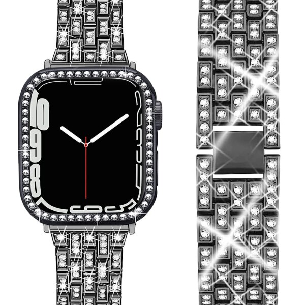Miimall対応Apple Watch Series 8 41mm 2022 /7 41mm 2021用 ケース バント アップルウォッチ 8 41mm 交換バンド ラインストーン 光沢度高い お洒落 傷防止 超簿軽量 PC材質ケース 高級ステンレスバンド Ap
