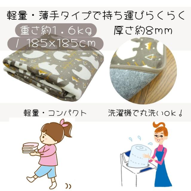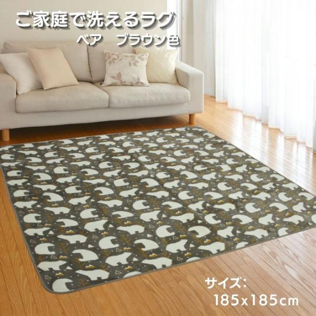 ご家庭で洗えるラグ ベア 185x185cm 2畳用 ブラウン色 かわいいシロクマ柄 ホットカーペットカバー こたつ敷