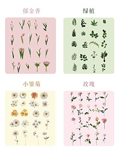160 シール フレーク シール フォーチュンシリーズ 手帳風 可愛い女の子 男の子 デコレーションノート 美化 diy 合成パターン 接着剤 学用品 事務用品 バッグ 小 80枚 (チューリップ緑の植物小さなデイジーローズ plant)