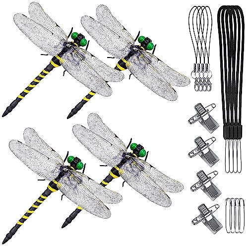 【トンボ虫除け効果抜群】昔から虫除けトンボは飛んでいる様々な小型の虫を捕食するという噂がある,蜻蛉 モデルの形はとてもリアルだ。ミツバチ、蚊、スズメバチ、蝶、蛾類、アブ、バッタ、カマキリ、ハエなどの昆虫に対して優れた警告で反発効果を発揮します。彼らは一定の警戒や逃避行為を示す。トンボの『黒×黄』の組み合わせのカラーは自然界の警戒色なので、虫たちに対してはボウフラと成虫の両方を捕食するため天敵となります