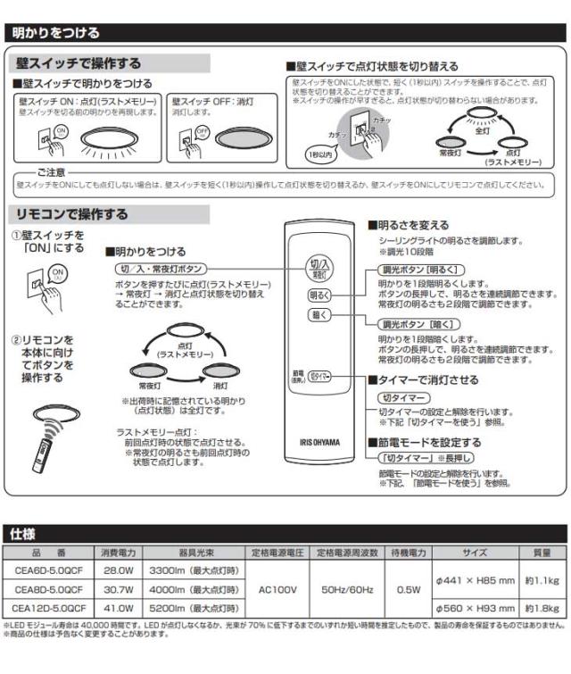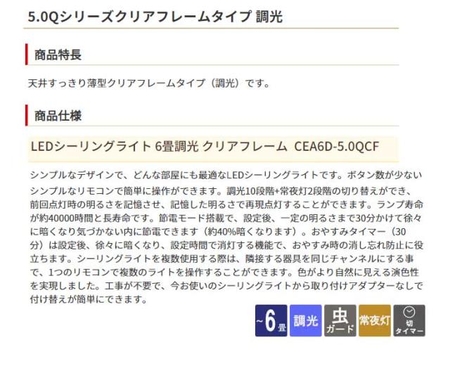 | CEA6D-5.0QCF LEDシーリングライト 6畳調光 クリアフレーム※リモコン付 スペック情報 | |