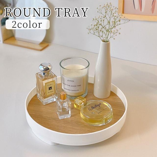 インテリアトレイ アクセサリートレイ 小物入れ トレー 卓上 円形 丸型 ラウンド型 木目調 収納 整理 おしゃれ シンプル ホ