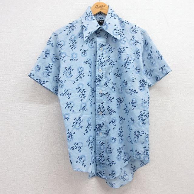 古着 キャンパス 半袖 シャツ 70年代 70s メンズ USA製 薄紺他 ネイビー ストライプ Sサイズ 中古 トップス 中古 古着