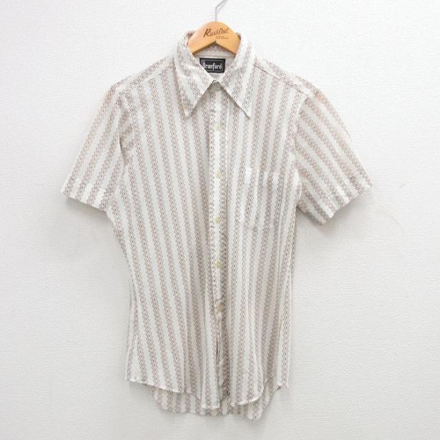 【商品名】 S★古着 キャンパス 半袖 シャツ 70年代 70s メンズ USA製 薄紺他 ストライプ